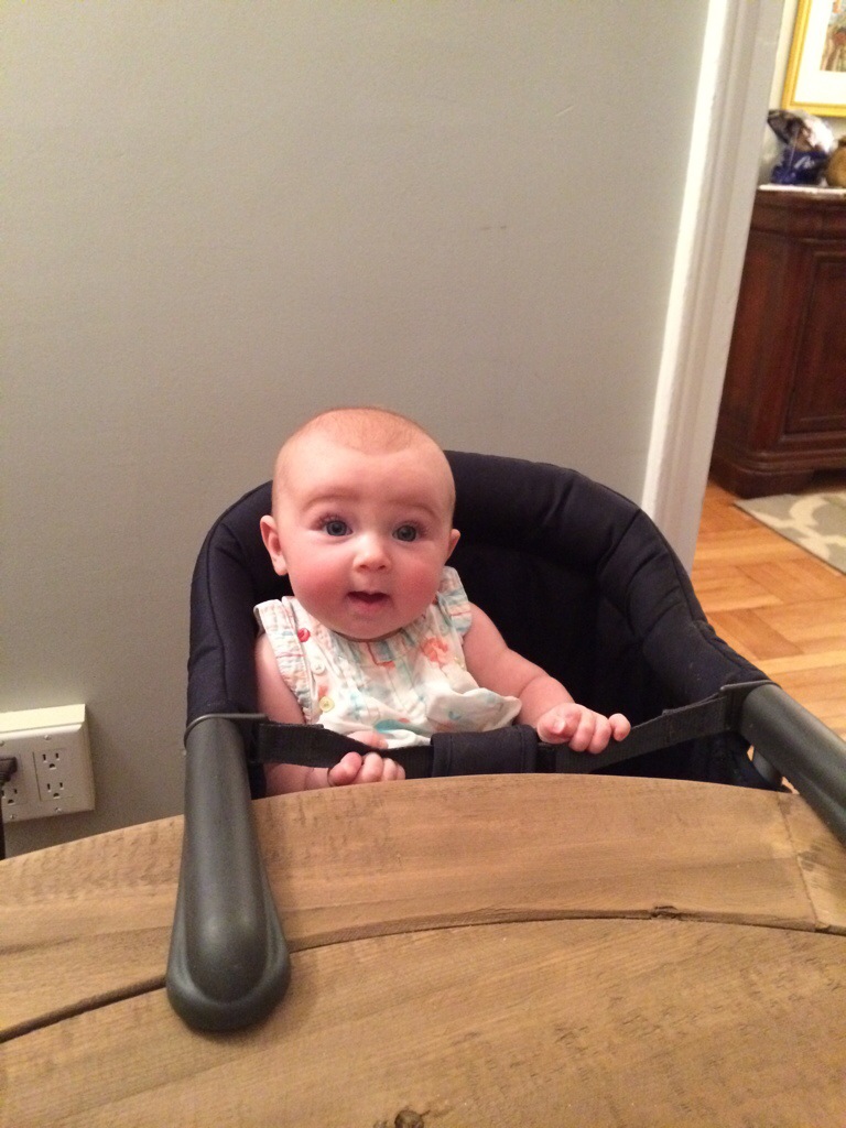 Eliza joins the family at the table