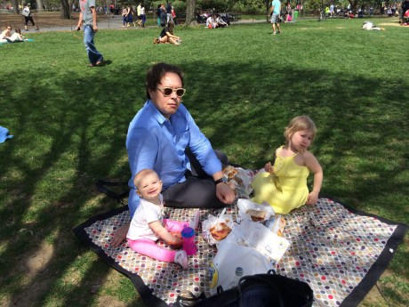 First picnic of the season! One happy photo subject and two uncooperative photo subjects