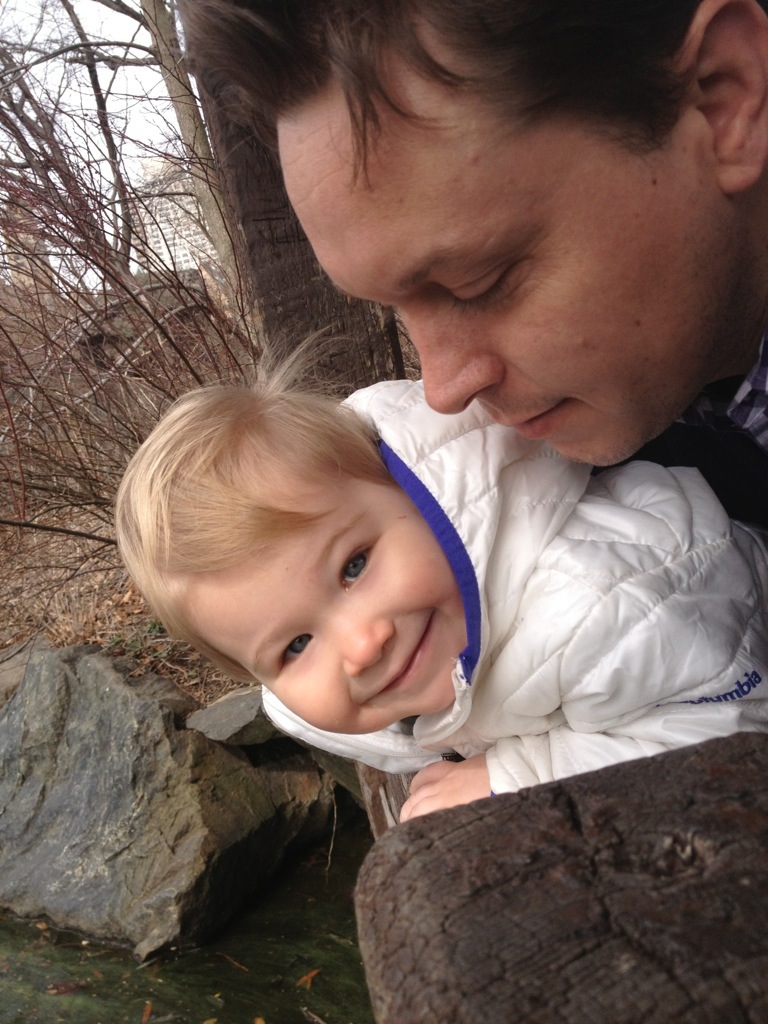 Leaning over the rail to look for ducks