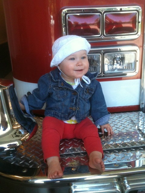 First day of my weekend with grandma and grandpa. Checking out the fire trucks.